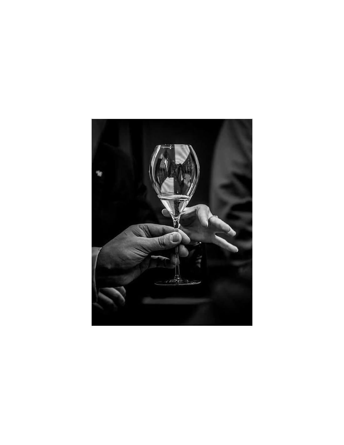 Die Robe enthüllt eine schöne goldgelbe Farbe, die von subtilen wassergrünen Reflexen geschmückt wird. Die lange Perlage ist von großer Feinheit. Die Nase öffnet sich mit pudrigen, blumigen (Iris) und mineralischen (feuchtes Gestein) Aromen. An der Luft entfalten sich getoastete und würzige Noten, die an Muskatnuss, Haselnuss, geröstete Mandeln oder auch...