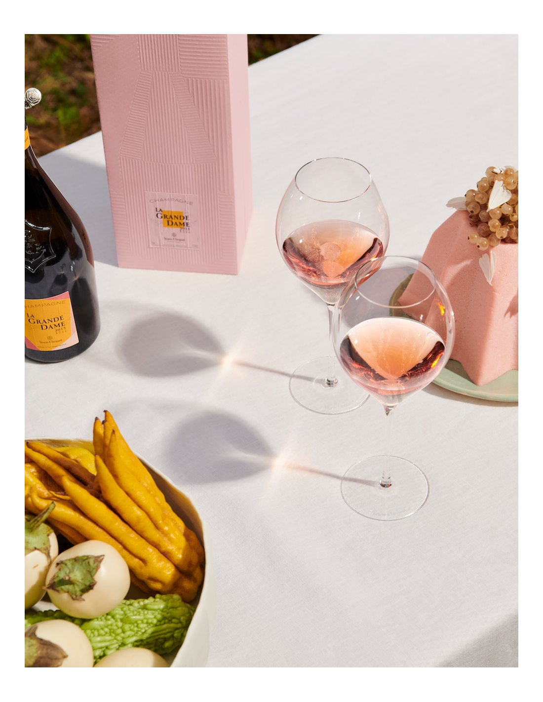 Set Limited Edition 2 Prestige-Gläser mit Logo auf dem Glasfuß & 1 Giftbox La Grande Dame Rosé Vintage 2015 by Paola Paronetto