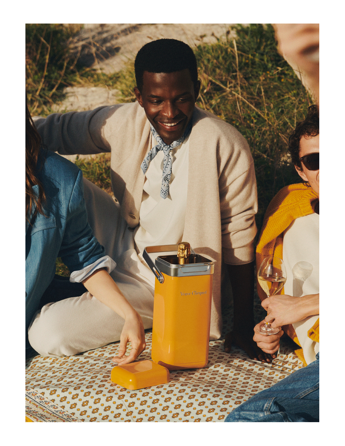 Conçu spécialement pour transporter une bouteille de Yellow Label ou de Rosé, ce nouvel objet fonctionnel peut être porté en bandoulière ou à l’épaule. Nomade mais également pratique, il conserve le champagne à température idéale pendant une heure, un essentiel pour un pique-nique.