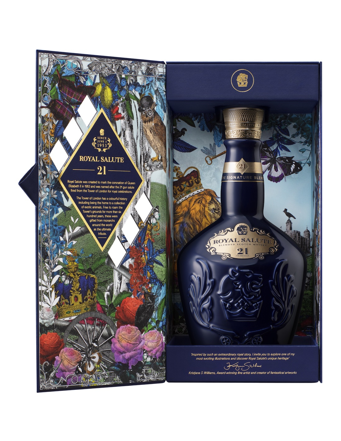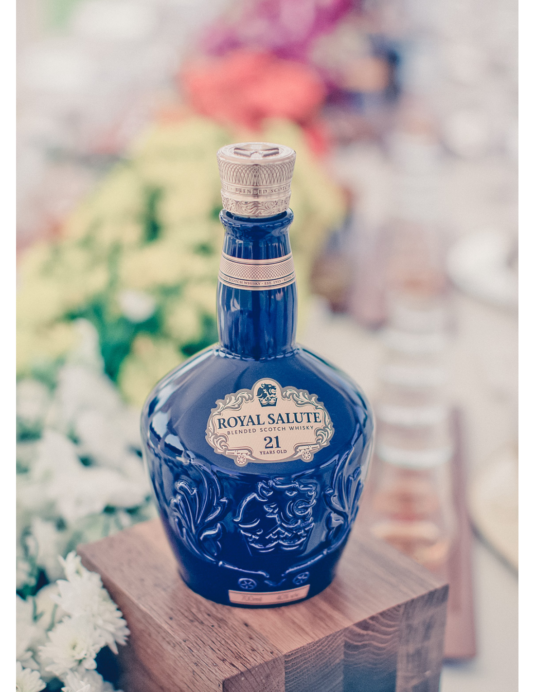 Créé en hommage au couronnement de Sa Majesté la Reine Elizabeth II en 1953, Royal Salute 21 ans d’âge se distingue par son parfum de fleurs d’automne qui précède des arômes de fruits profonds et intenses. Élaboré uniquement avec les meilleurs whiskys, il respecte la tradition unique de la marque qui consiste à n’utiliser que des whiskys ayant patiemment vieilli pendant au moins 21 ans. Un whisky précieux présenté dans son flacon de porcelaine caractéristique, recouvert d’une gravure bleu saphir.