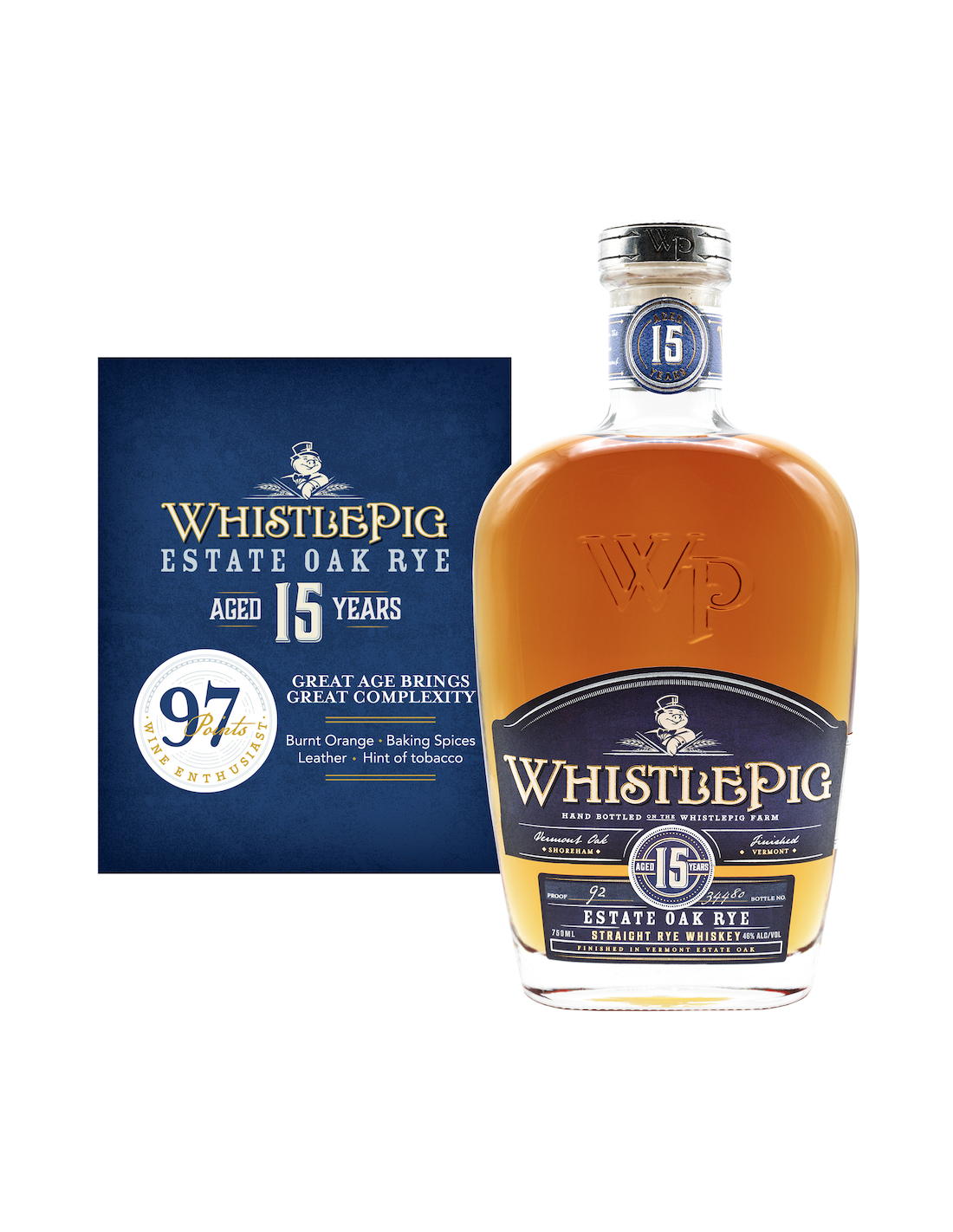 Whistlepig 15 Years Old est un des whiskeys les plus agés de la maison – et un des premiers, qui sont vieillis dans les fûts du chêne de notre propriété au Vermont. A 92 proof (46 Vol. % d‘alcool) ce whiskey est plus expressif et mûr que son âge ne laise soupconner. Et avec un rating de 97 points sur 100 du Wine Enthusiast, nous ne sommes pas les seuls à le trouver exceptionnel!