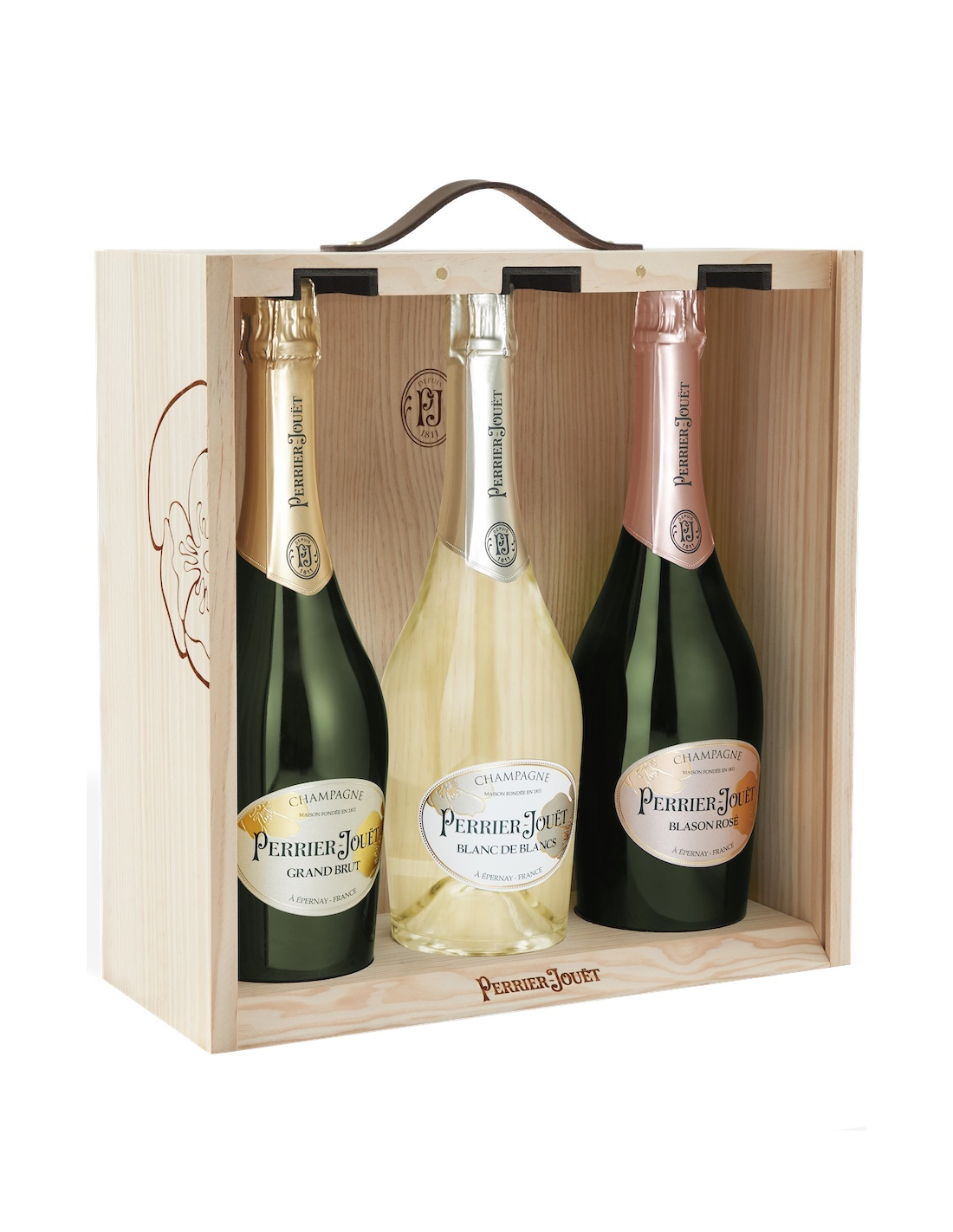 Perrier-jouët Wooden Box Trio Blanc de blancs, Brut & Rosé - 3 x 75 cl